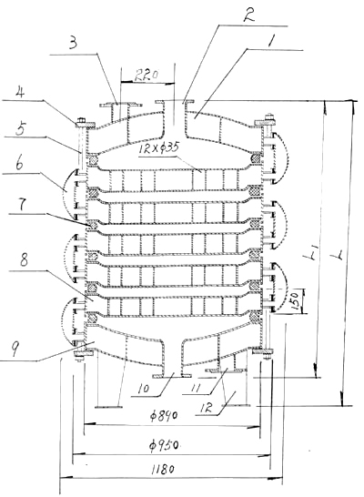 | 7 | 橡膠四氟墊 | φ860×φ800每片 | 1 | 11 | 2150 | 2060 | 1245 |